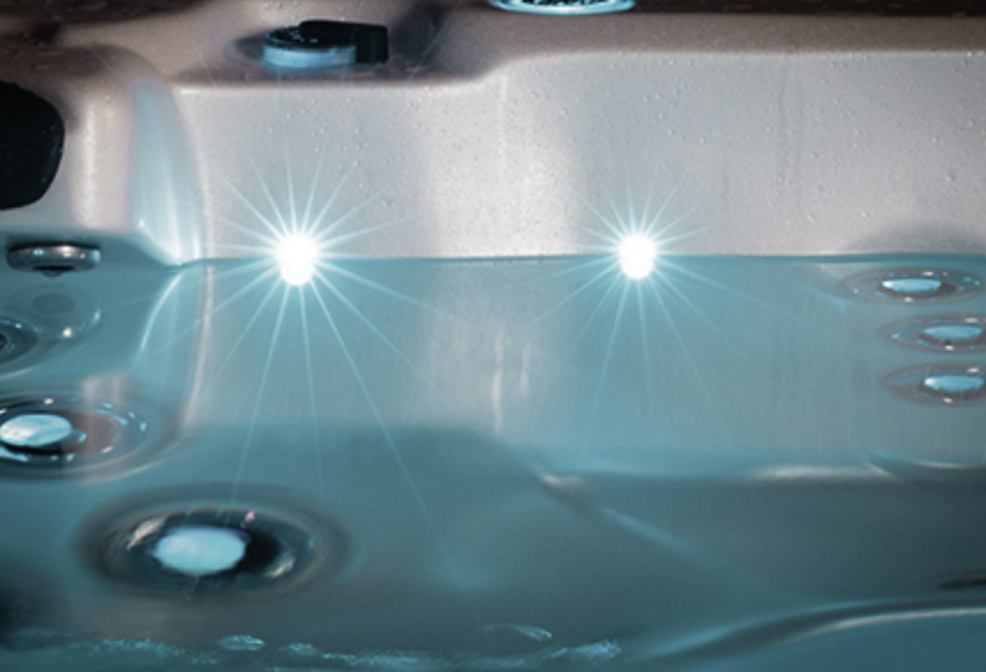 Chromotherapy uses colours to create an environment focused on health and harmony. Hydroglow™ backlit jets and topside control lighting provide an adjustable and variable Chromotherapy experience. *(Mercury spa pool image shown)*