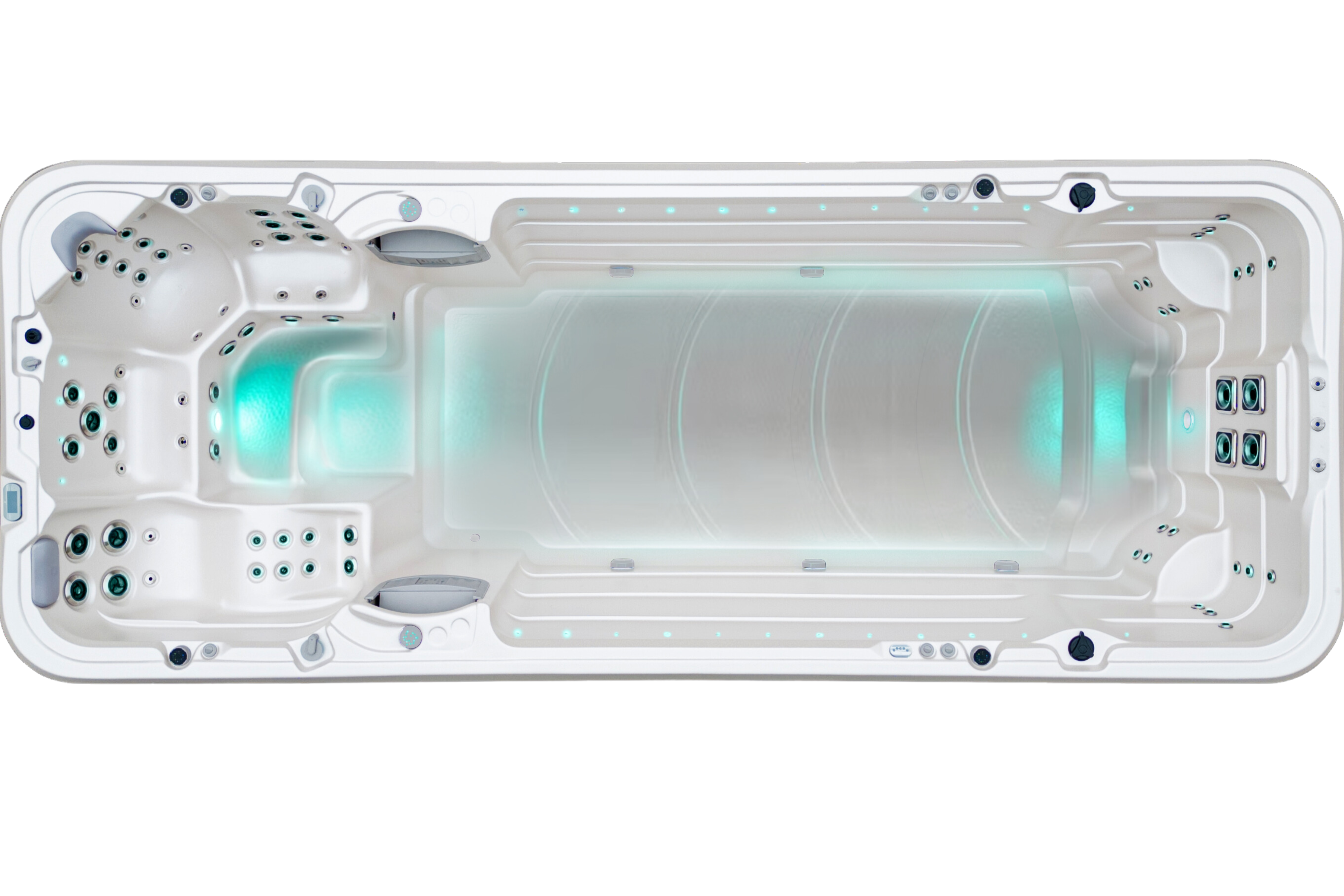 The Aqualap™ comes in four variations. Each model has exactly the same seating layout and features. However, the swim resistance zone has additional jets in the Pro, Pro+ and Extreme.
